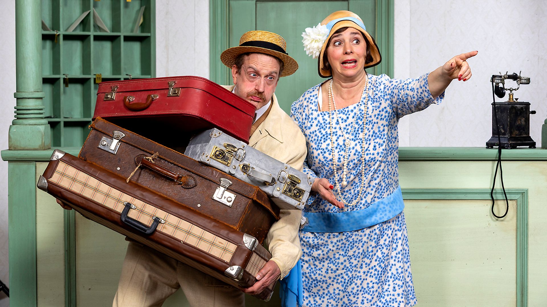 Problemen låter naturligtvis inte vänta på sig. Pastor Livhed (Mikael Riesebeck) som ska hålla i minnesstunden visar sig ha narkolepsi och somnar stup i kvarten. Den lokale brevbäraren Dag-Otto Flink (Jojje Jönsson) dyker upp för att ”hjälpa till” men vet tillslut inte om han är brevbärare, smugglare, servitör eller präst. Den snacksaliga och filterlösa Rut (Annika Andersson) och hennes mumlande, snubblande och badsugne make Ragnar (Mikael Riesebeck) tar in på hotellet och blir givetvis ofrivilligt indragna i röran.